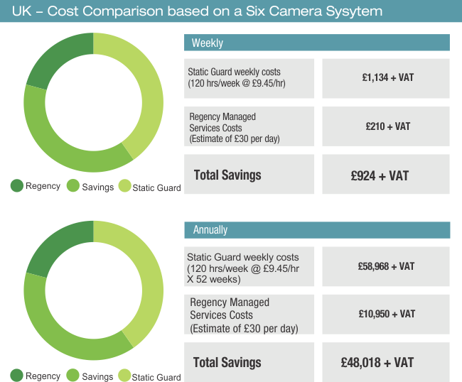 Regency offers significant cost savings when compared to a traditional manned guard solution - just see the diagram below.